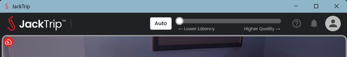 JackTrip's Audio Quality slider is perhaps it's most important feature. You'll find it in the upper-right corner of the user interface, whenever you are connected to a live session.
